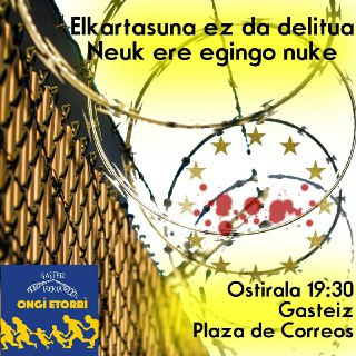 Se les ha caído la cara de vergüenza pero siguen intentando criminalizar la acción de los dos compañeros vascos. Ya no les acusan de Trata de personas sino de ¡favorecer la inmigración ilegal!. ¡Pero si es la política europea la... Seguir leyendo →